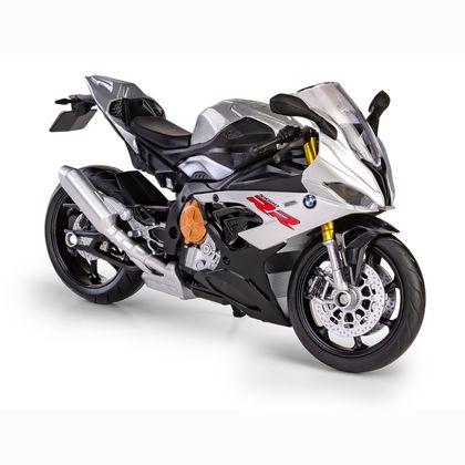Licencjonowany model motocykla BMW S1000RR 2020 (Regular) Srebrny w skali 1:12. Wykonany z metalu oraz elementów plastikowych. Seria RMZ City Motor Collection jest wiernym odwzorowaniem motocykli wyścigowych, wyposażony w skrętne przednie koło, amortyzowane tylne zawieszenie oraz podpórkę.