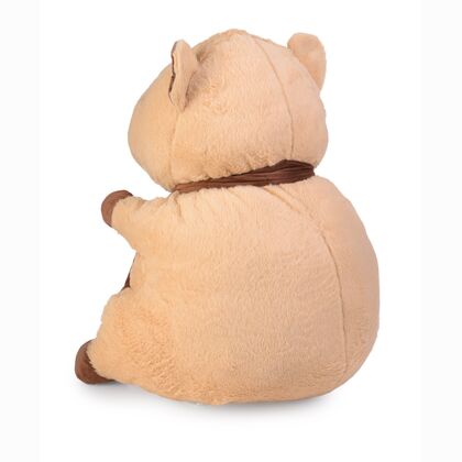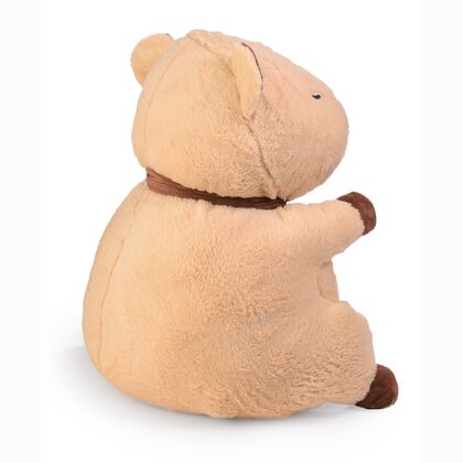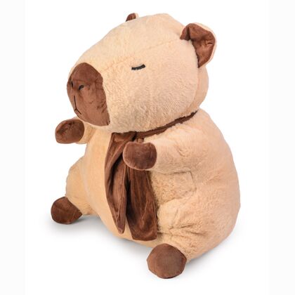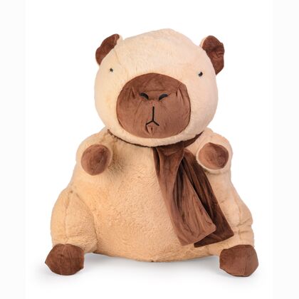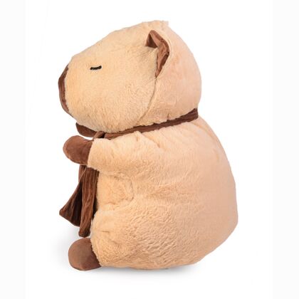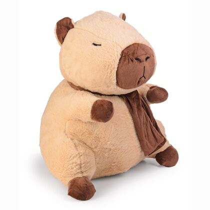 Duża kapibara o wysokości 66 cm wykonana z wyjątkowo miękkiego i przyjemnego w dotyku pluszu, ozdobiona brązowym szalikiem pod szyją. Produkt wyróżnia się naturalną, stonowaną kolorystyką i starannie wyhaftowanymi detalami. Jej przyjazny, spokojny wyraz twarzy doskonale wpisuje się w trend popularności kapibar jako symbolu relaksu i pozytywnych emocji.