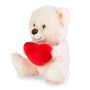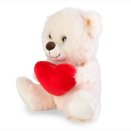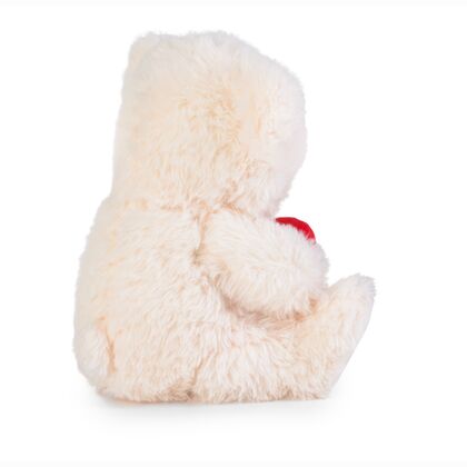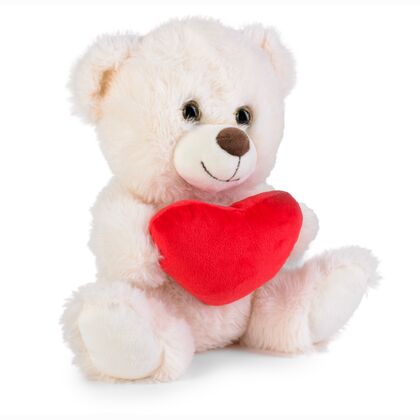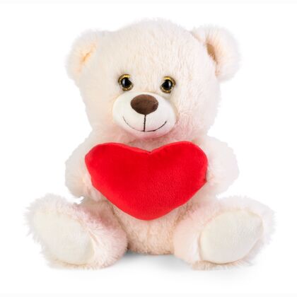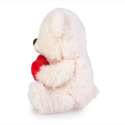 Klasyczny miś w eleganckim, ponadczasowym wydaniu o wysokości 25 cm w pozycji siedzącej. W łapkach trzyma duże czerwone serce – wyraźny symbol miłości, bliskości i ciepłych emocji. Miś wykonany jest z miękkiego, przyjemnego w dotyku pluszu. Starannie wykończone detale i proporcjonalna sylwetka.