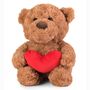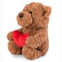 Klasyczny miś w eleganckim, ponadczasowym wydaniu o wysokości 25 cm w pozycji siedzącej. W łapkach trzyma duże czerwone serce – wyraźny symbol miłości, bliskości i ciepłych emocji. Miś wykonany jest z miękkiego, przyjemnego w dotyku pluszu. Starannie wykończone detale i proporcjonalna sylwetka.