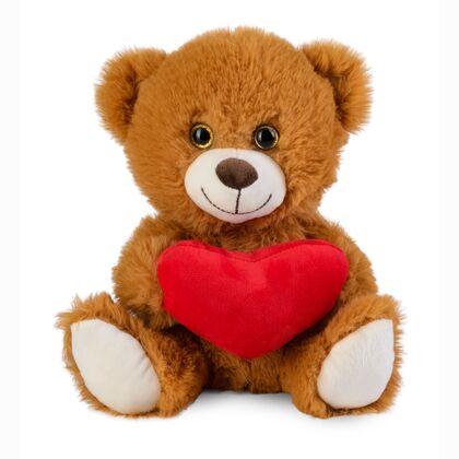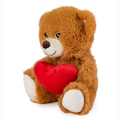 Klasyczny miś w eleganckim, ponadczasowym wydaniu o wysokości 25 cm w pozycji siedzącej. W łapkach trzyma duże czerwone serce – wyraźny symbol miłości, bliskości i ciepłych emocji. Miś wykonany jest z miękkiego, przyjemnego w dotyku pluszu. Starannie wykończone detale i proporcjonalna sylwetka.