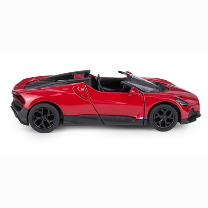 Metalowy model samochodu z napędem Pull Back i otwieranymi drzwiami. Solidna metalowa konstrukcja z detalami plastikowymi i otwarta paka zapewniają realizm i wysoką jakość wykonania. Idealny do zabawy i kolekcji.