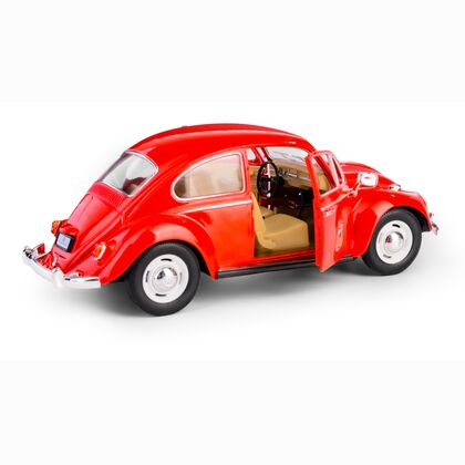 Metalowy model kolekcjonerski 1967 Volkswagen Classical Beetle w skali 1:24 z funkcją pull-back. Produkt wykonany z wysokiej jakości metalu i tworzywa sztucznego, z otwieranymi drzwiami i gumowymi oponami. Zaprojektowany z dbałością o detale, idealny zarówno jako zabawka dla dzieci powyżej 3 roku życia, jak i gadżet kolekcjonerski.