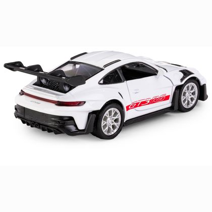 Model metalowy DIE CAST MATTE - RMZ 5 Porsche 911 GT3 RS 2023 w kolorze białym, skala 1:37. Posiada napęd pull-back oraz otwierane drzwi, przez które można zajrzeć do wnętrza samochodu. Metalowy pojazd z elementami plastikowymi wykonany z najwyższą starannością z materiałów wysokiej jakości. Miniaturowe spełnienie marzeń dzięki licencjonowanym modelom aut. Model spełni oczekiwania kolekcjonerów oraz dzieci podczas zabawy.